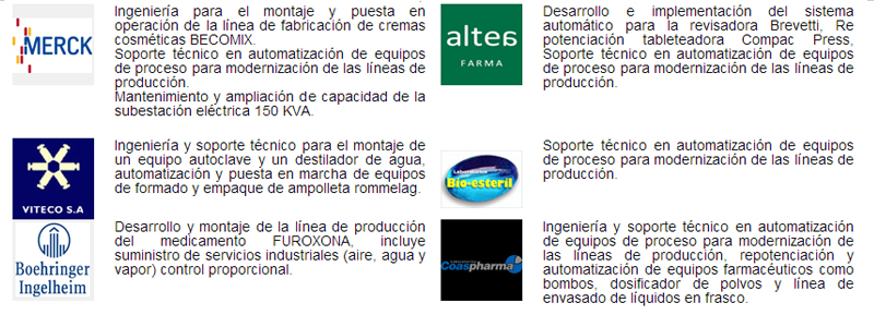Proveemos soluciones que permitan mejorar los procesos de automazación de su empresa, si esta interesado en nuestros servicios nos dude en contactarnos estas empresas lo hicieron y estan satisfechos con nuestro trabajo.